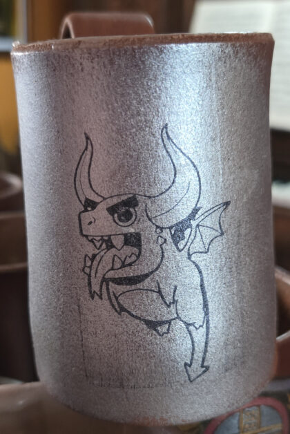 Nip size, holds about 4 ounces. Design style may vary. Each nip is created with stamps & the final product depends on the mood of the artist.